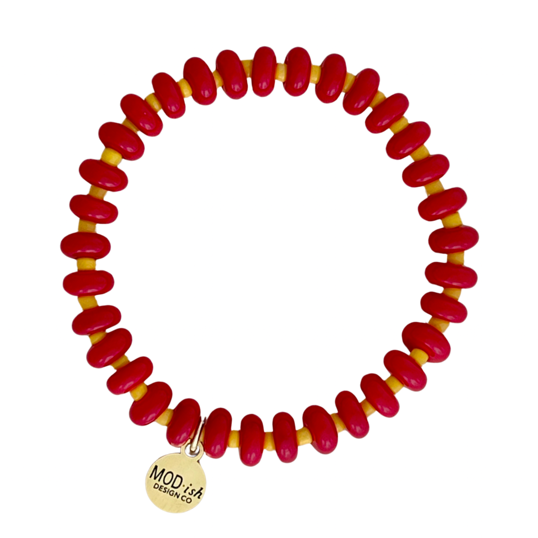 ✦ Red donut beads together with tiny yellow glass beads make the perfect game day bracelet ✦ High quality, tarnish resistant ✦ Bracelet measures approximately 7 inches in length ✦ Need a different size? Just ask! ✦ A portion of every purchase helps foster children and the families who care for them! Thank you for supporting this women-owned, small business!