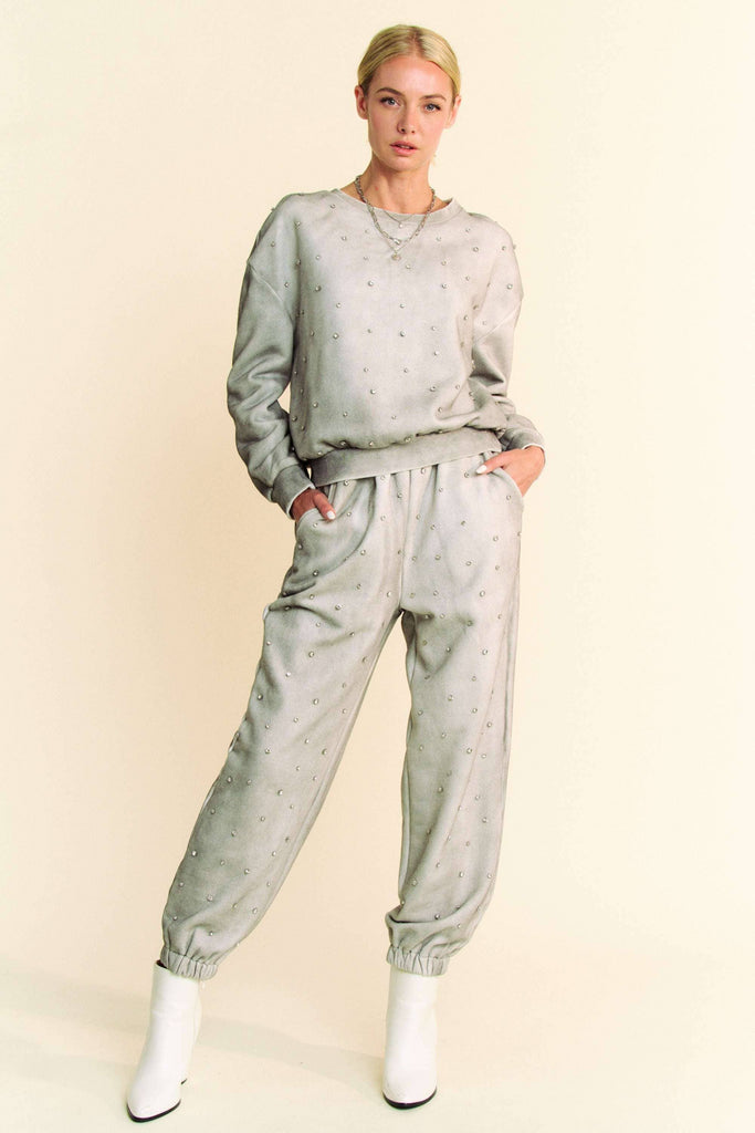 RHINESTONE LONG SLEEVE CROP & PANT SET