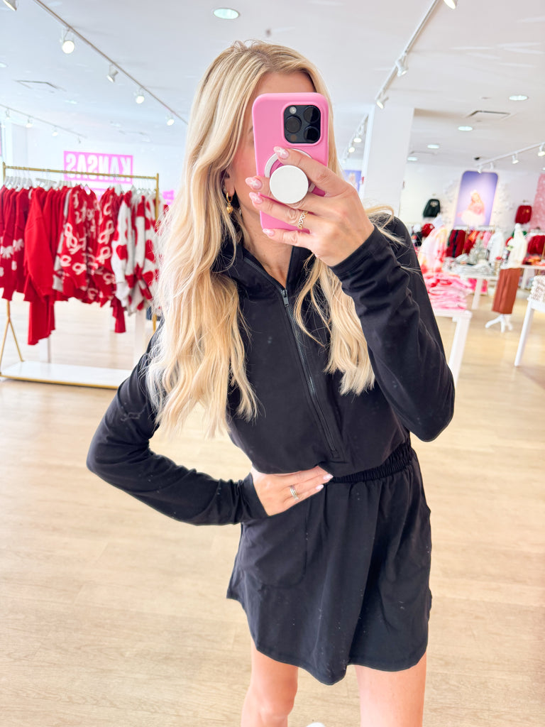 Black Butter Soft Quarter Zip Romperskirt - Medium / Black is backordered and will ship as soon as it is back in stock.