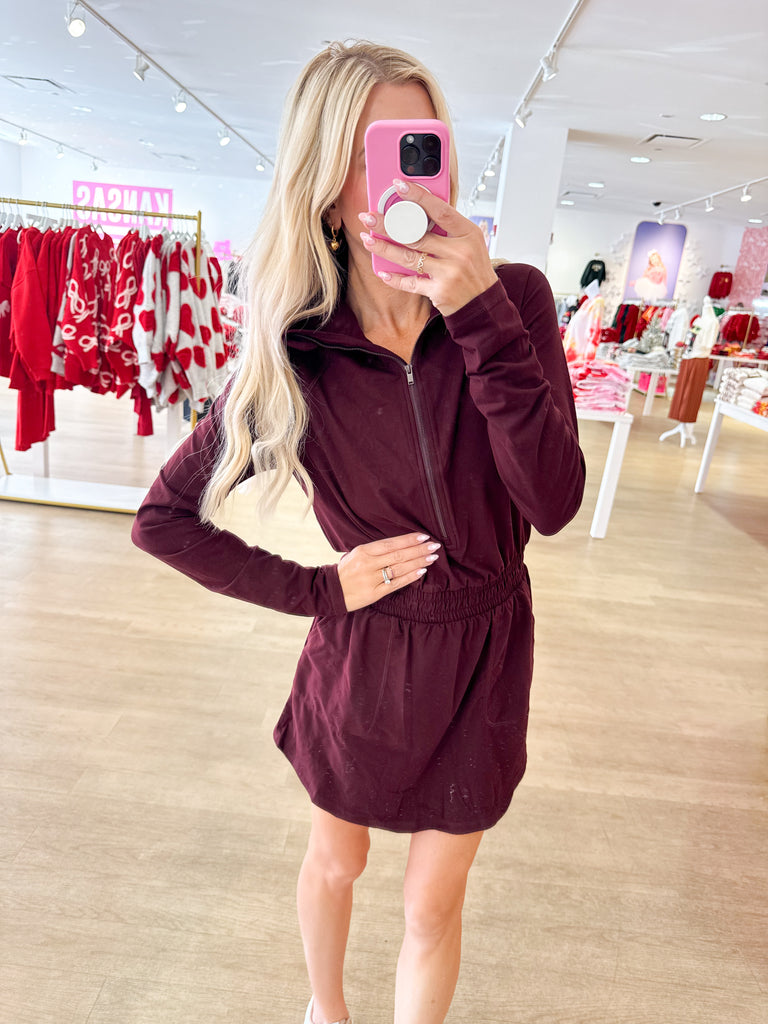 Dark Cherry Butter Soft Quarter Zip Romperskirt - Small / Dark Cherry is backordered and will ship as soon as it is back in stock.