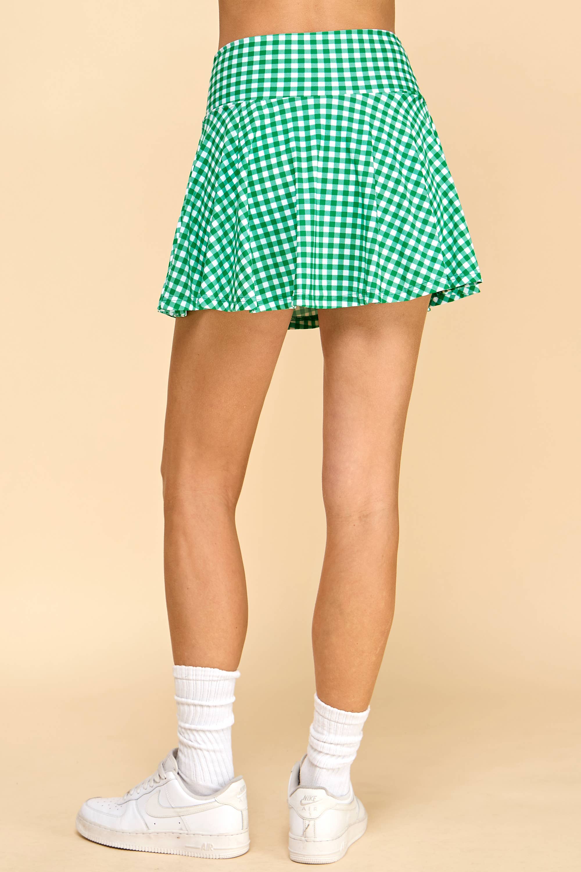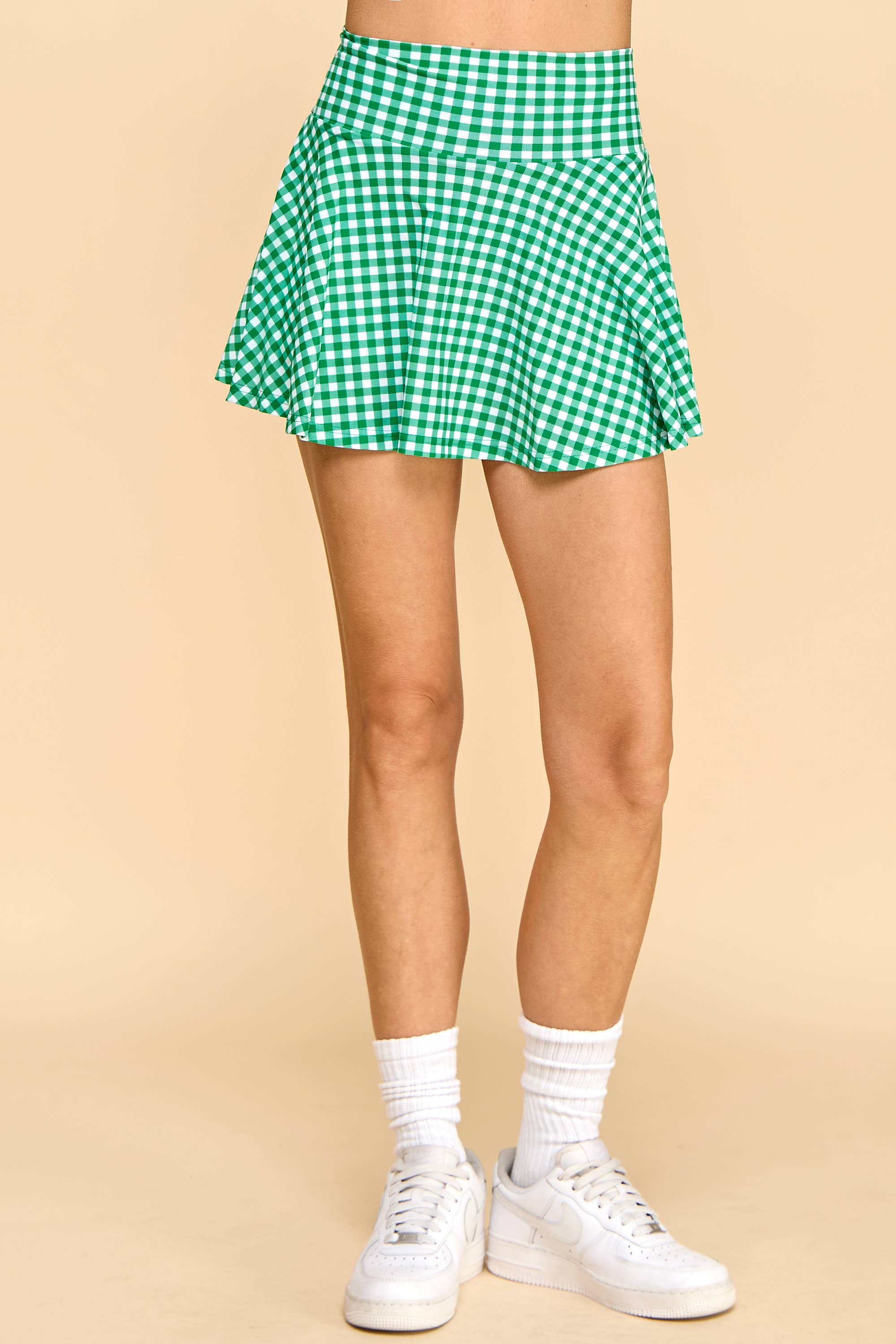 Green Motion Gingham Built In Shorts Athleisure Skirt