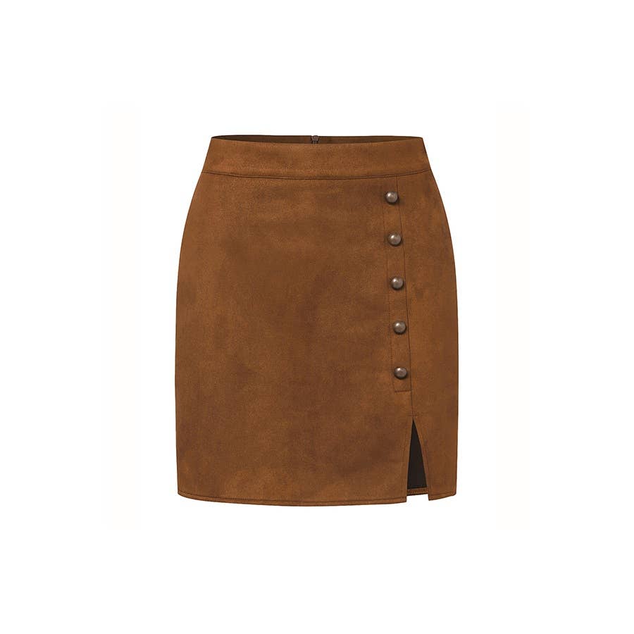 Expertly crafted for style and comfort, this Women's Suede High Waist Metal Buckle Hip Skirt elevates any outfit with its solid color and elegant metal buckle detail. The high waist design accentuates your curves while the soft suede material provides a luxurious feel. Experience the perfect blend of fashion and functionality.