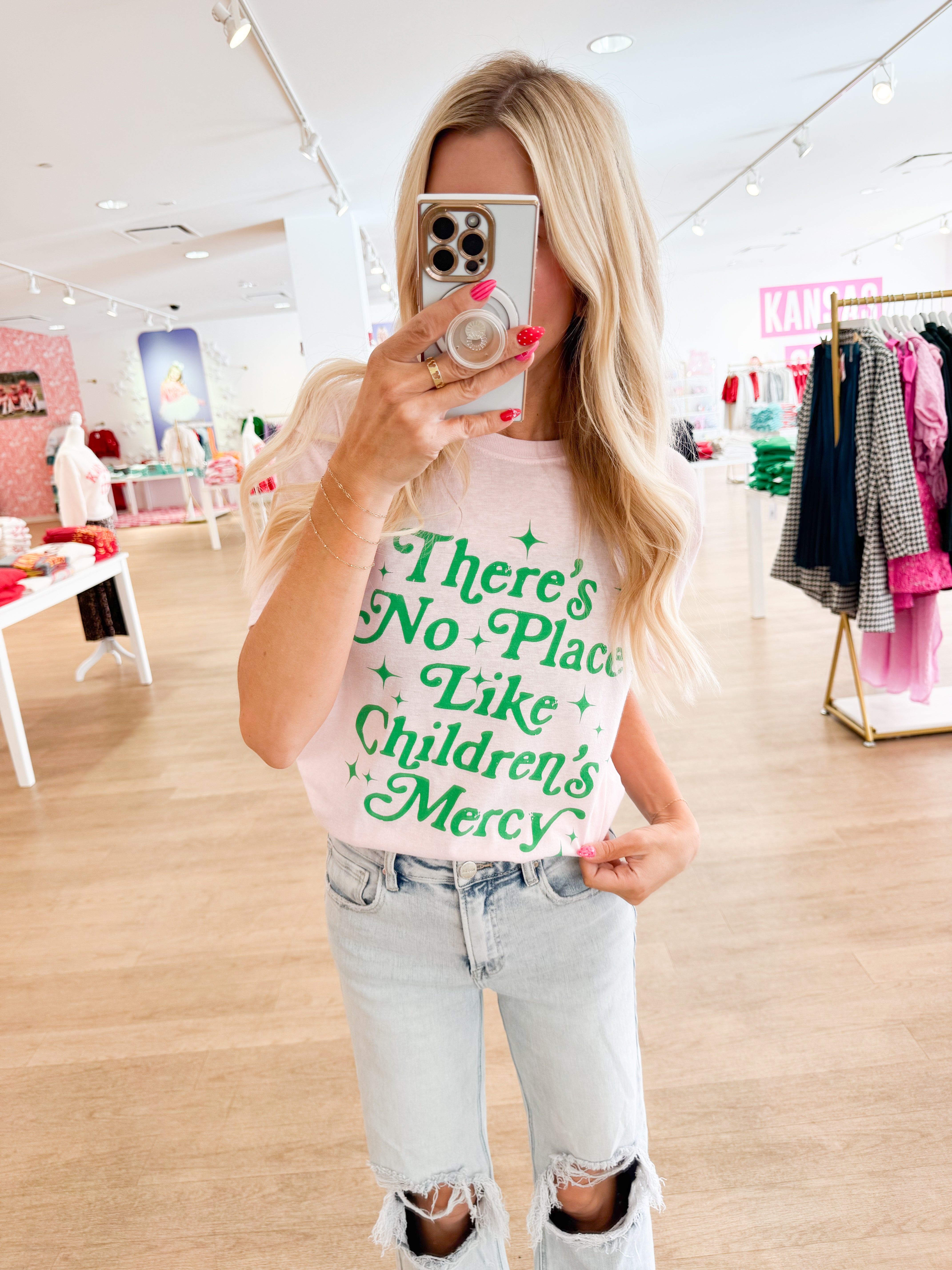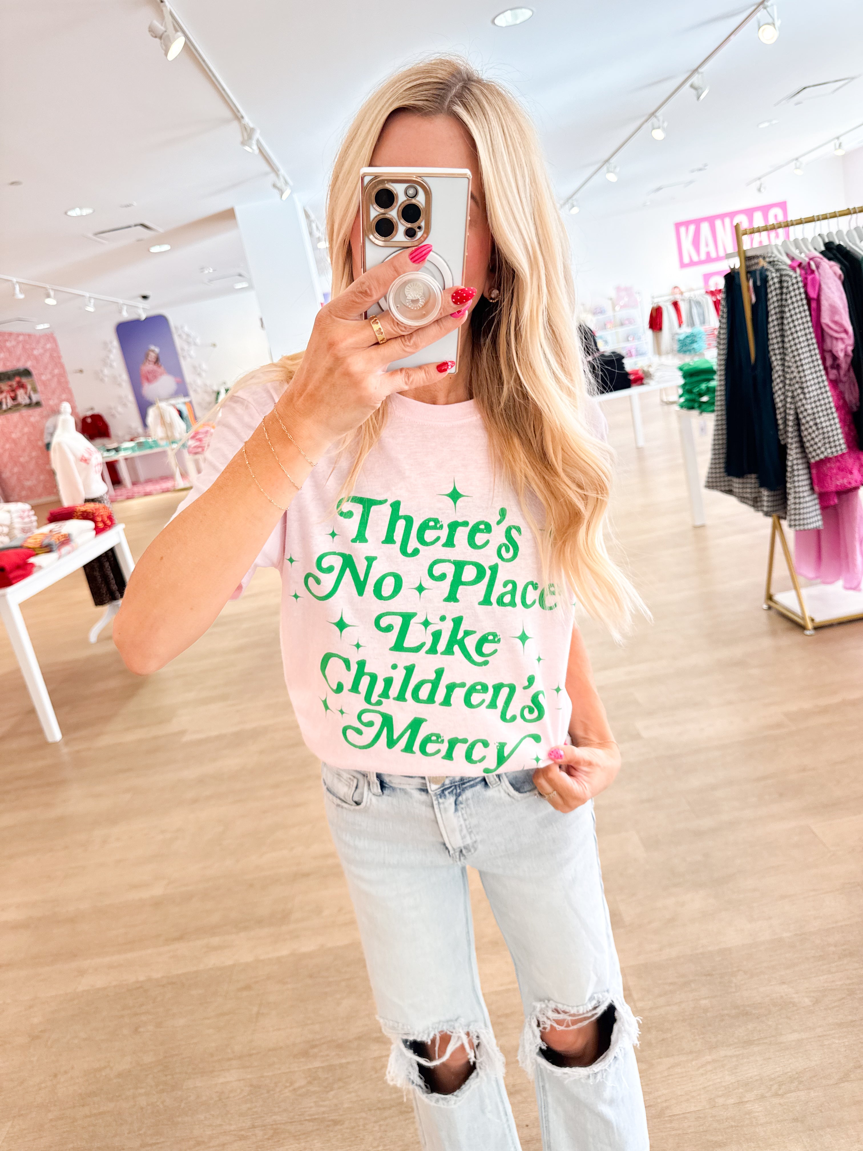 Light Pink & Green No Place Like Children's Mercy Tee - Small is backordered and will ship as soon as it is back in stock.