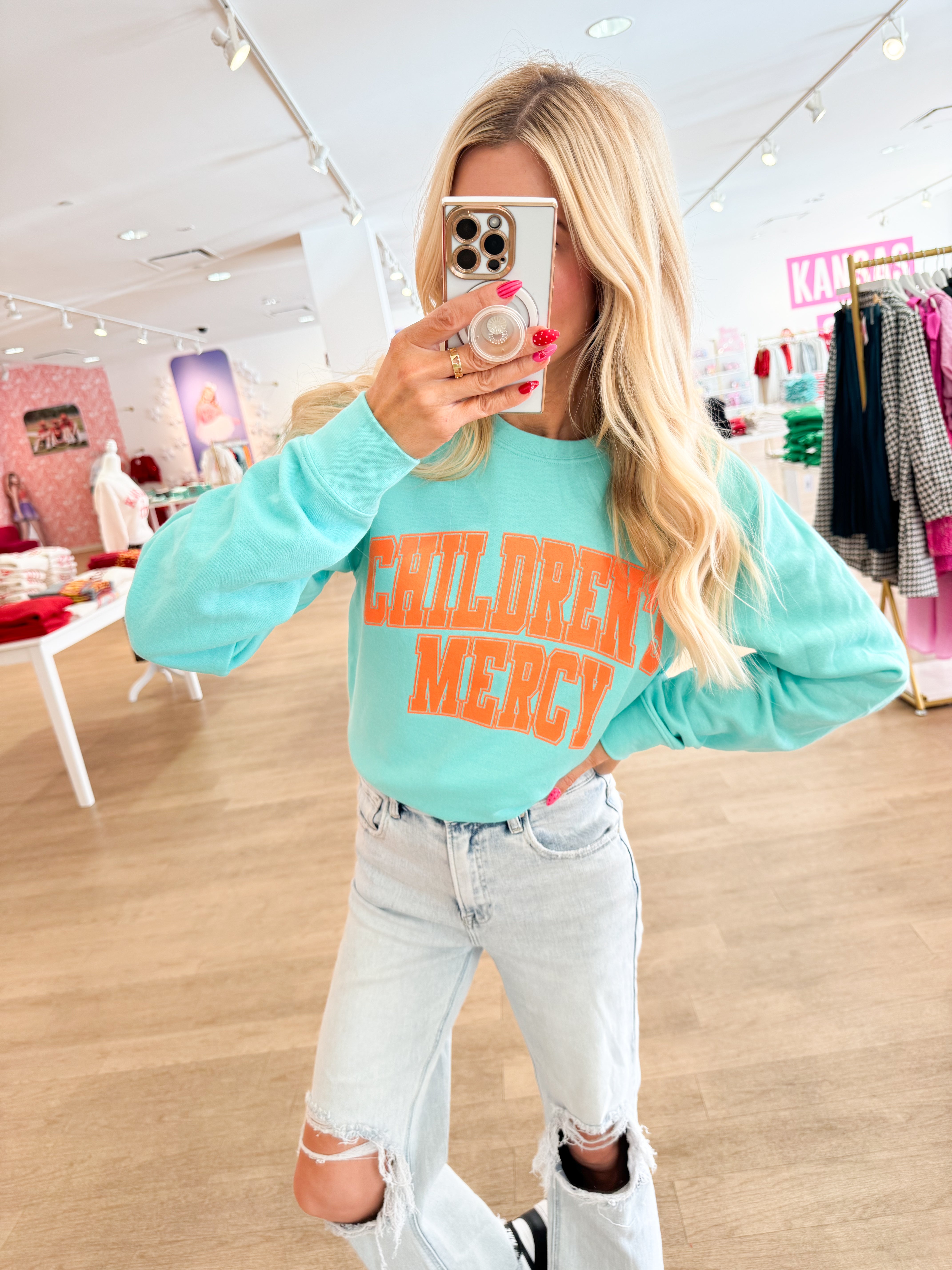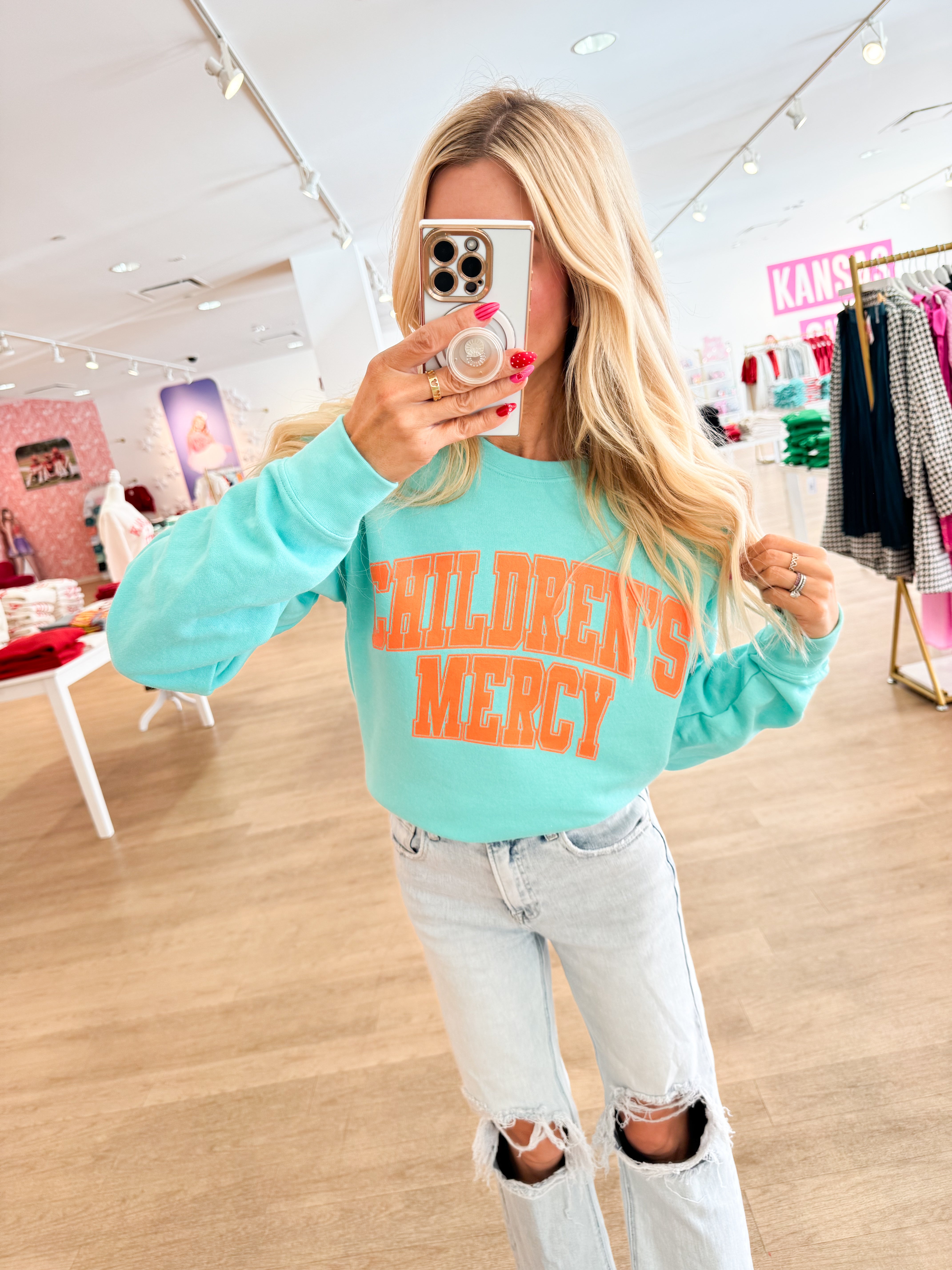 Teal & Orange Children's Mercy Sweatshirt - Small is backordered and will ship as soon as it is back in stock.