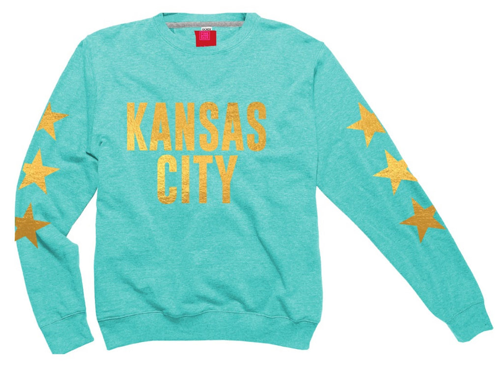 Teal & Metallic Kansas City Star Sleeve Sweatshirt