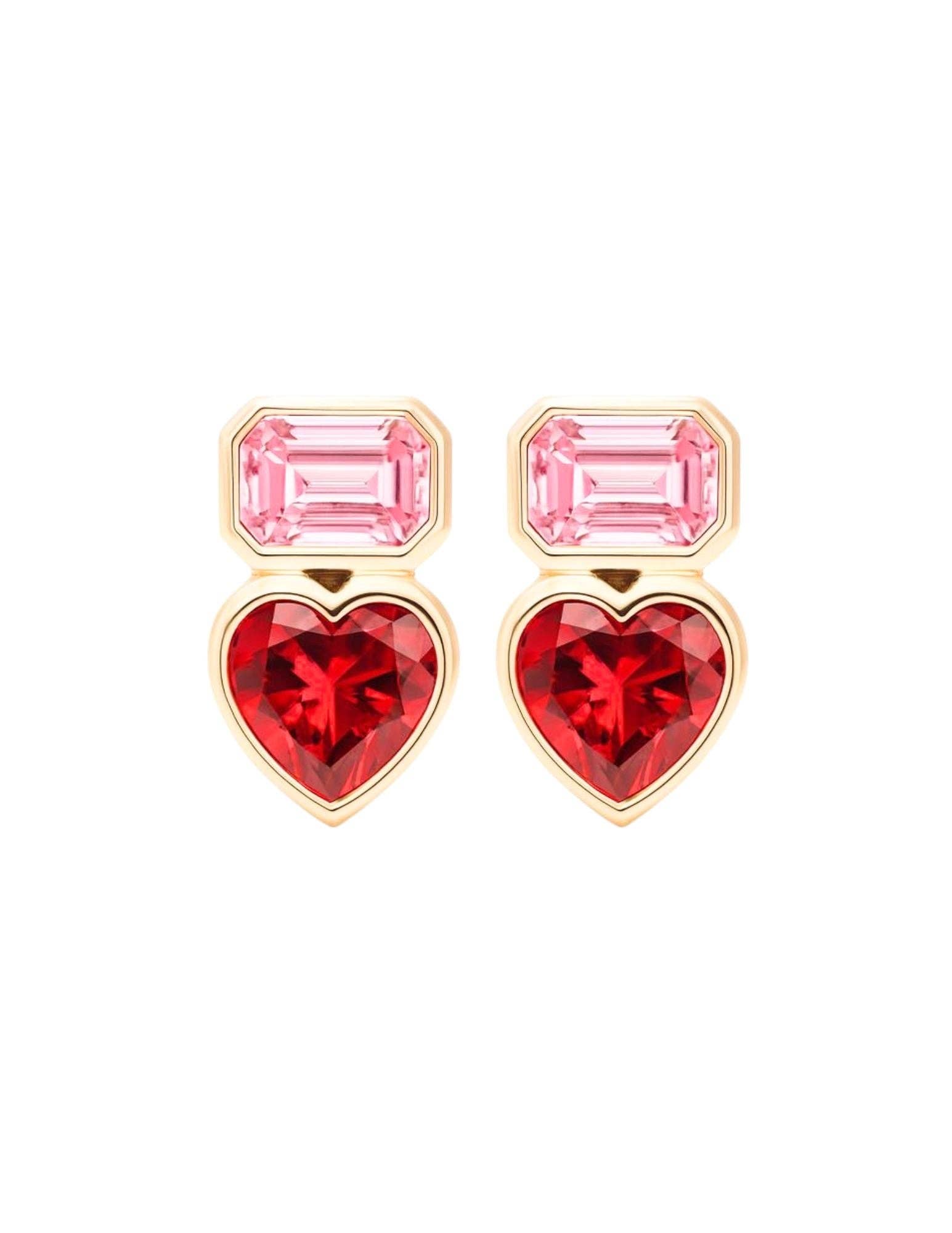 Emerald Cut Heart Stud Earrings
