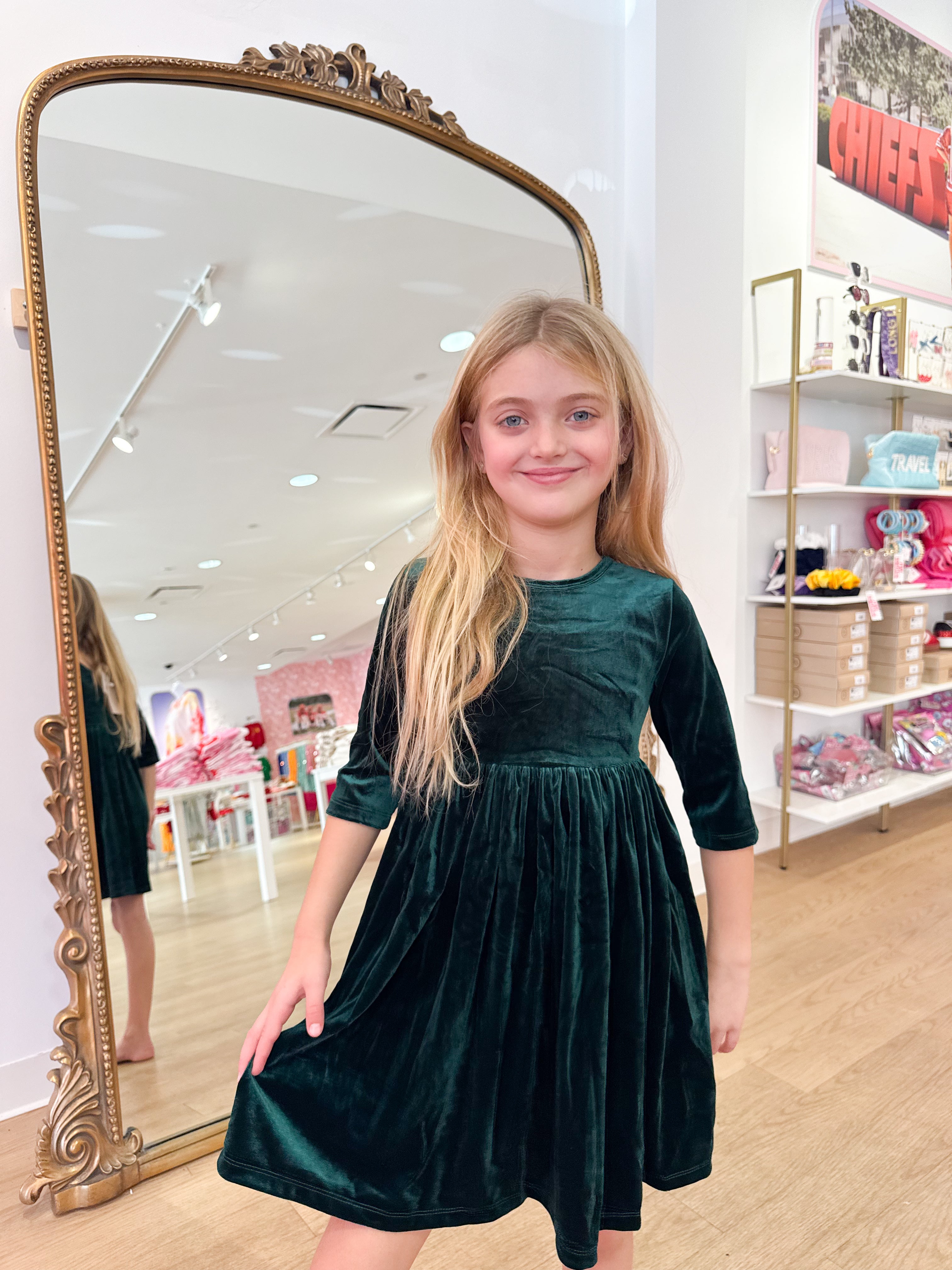 Hunter Green Velvet Twirl Dress - 2T is backordered and will ship as soon as it is back in stock.
