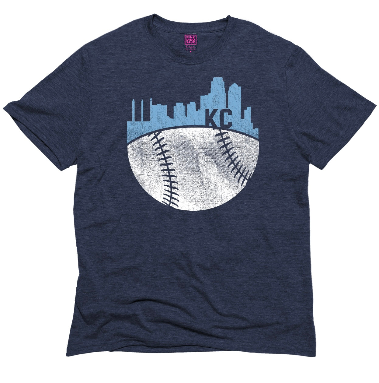 Show your city pride with this unique blue and golden yellow distressed tee! Above the Kansas City Baseball catch a glimpse of the KC skyline we all know and love! This tee blends local love with team spirit, perfect for repping your roots all baseball season long. This design is not only popular with women but men too! (don't forget, like this one, most our designs are unisex fit!)