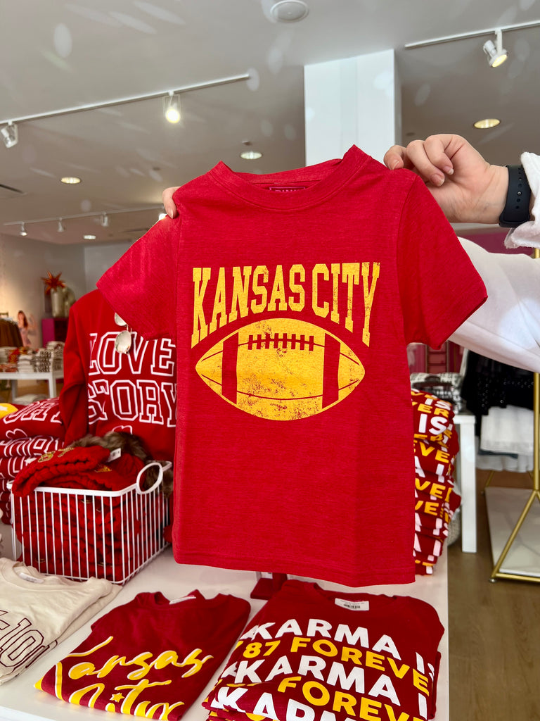 Youth Red Distressed Kansas City Tee - XX-Small is backordered and will ship as soon as it is back in stock.