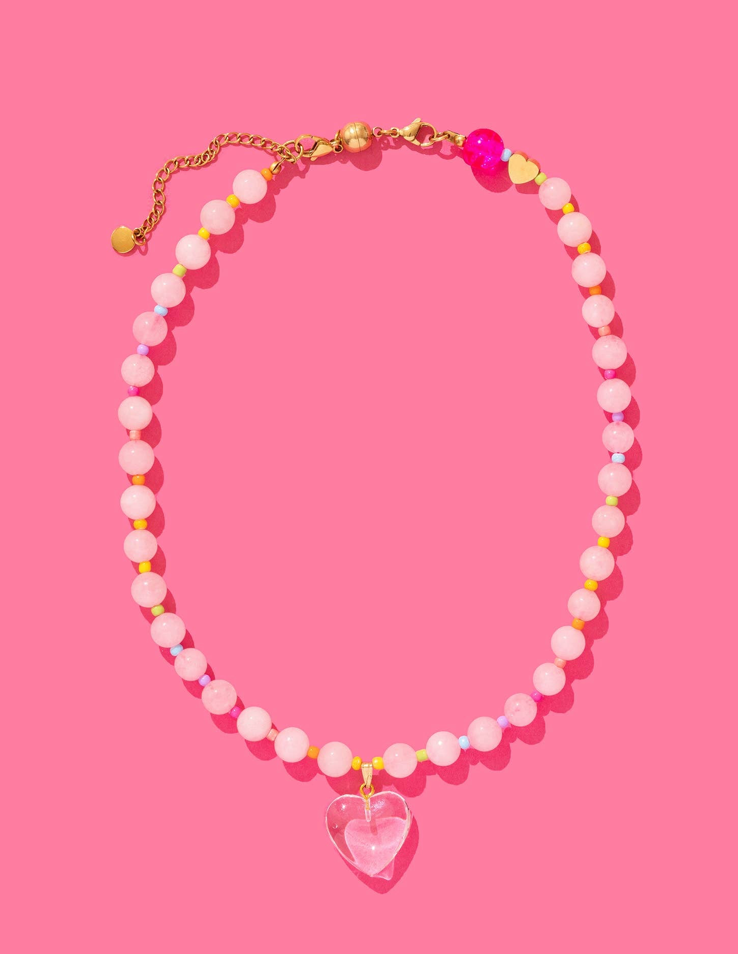 Rose Quartz Beaded Heart Charm Necklace