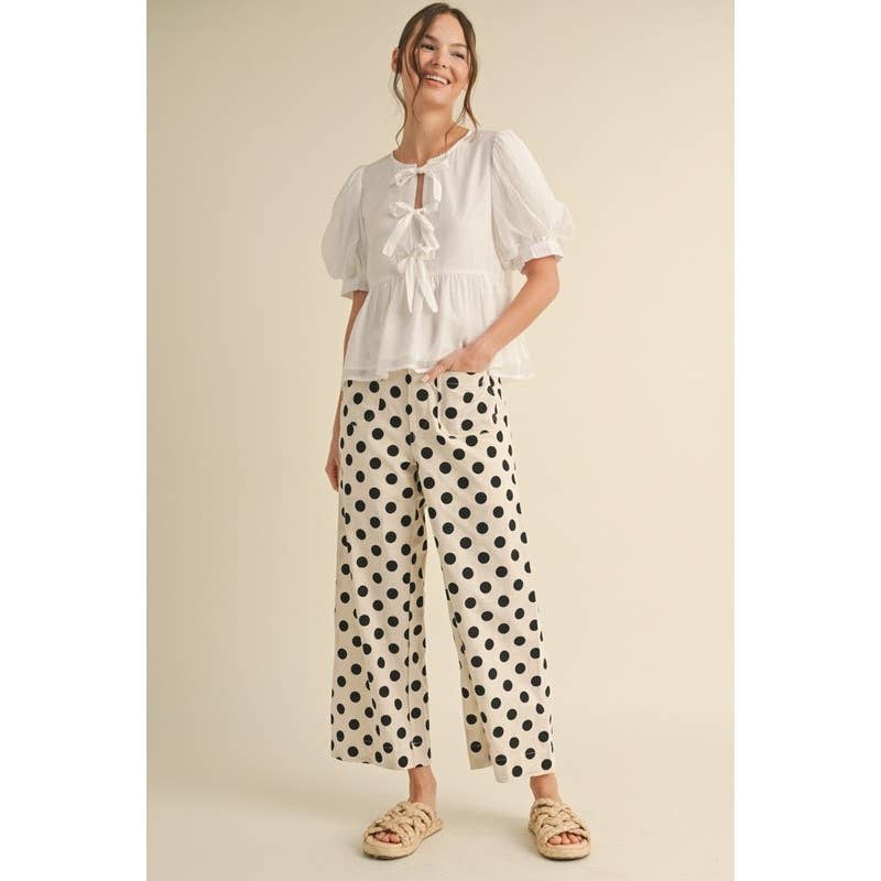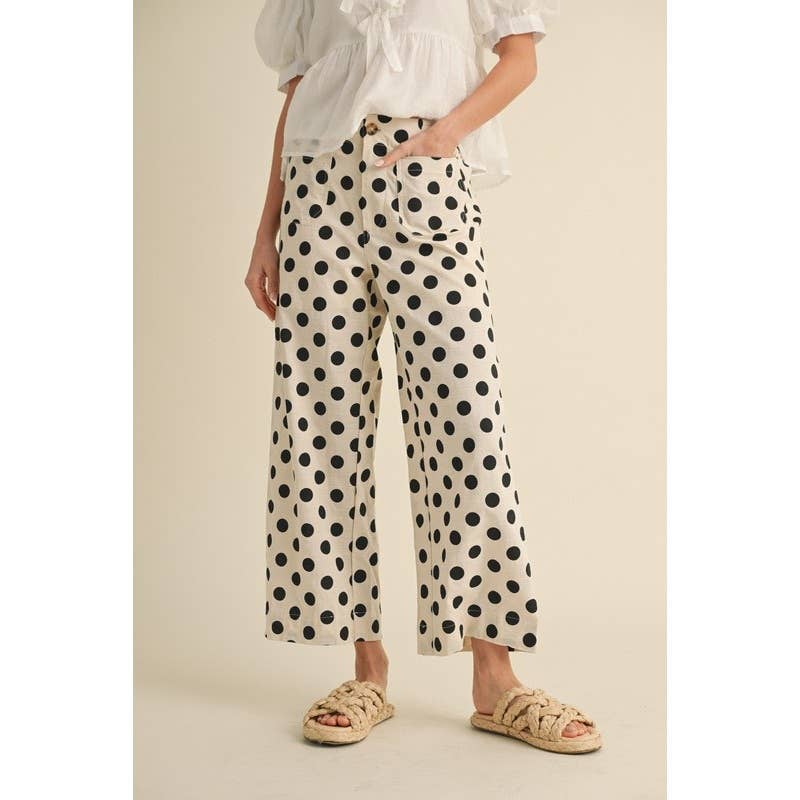 Polka Dot Wide Leg Pants - Small is backordered and will ship as soon as it is back in stock.