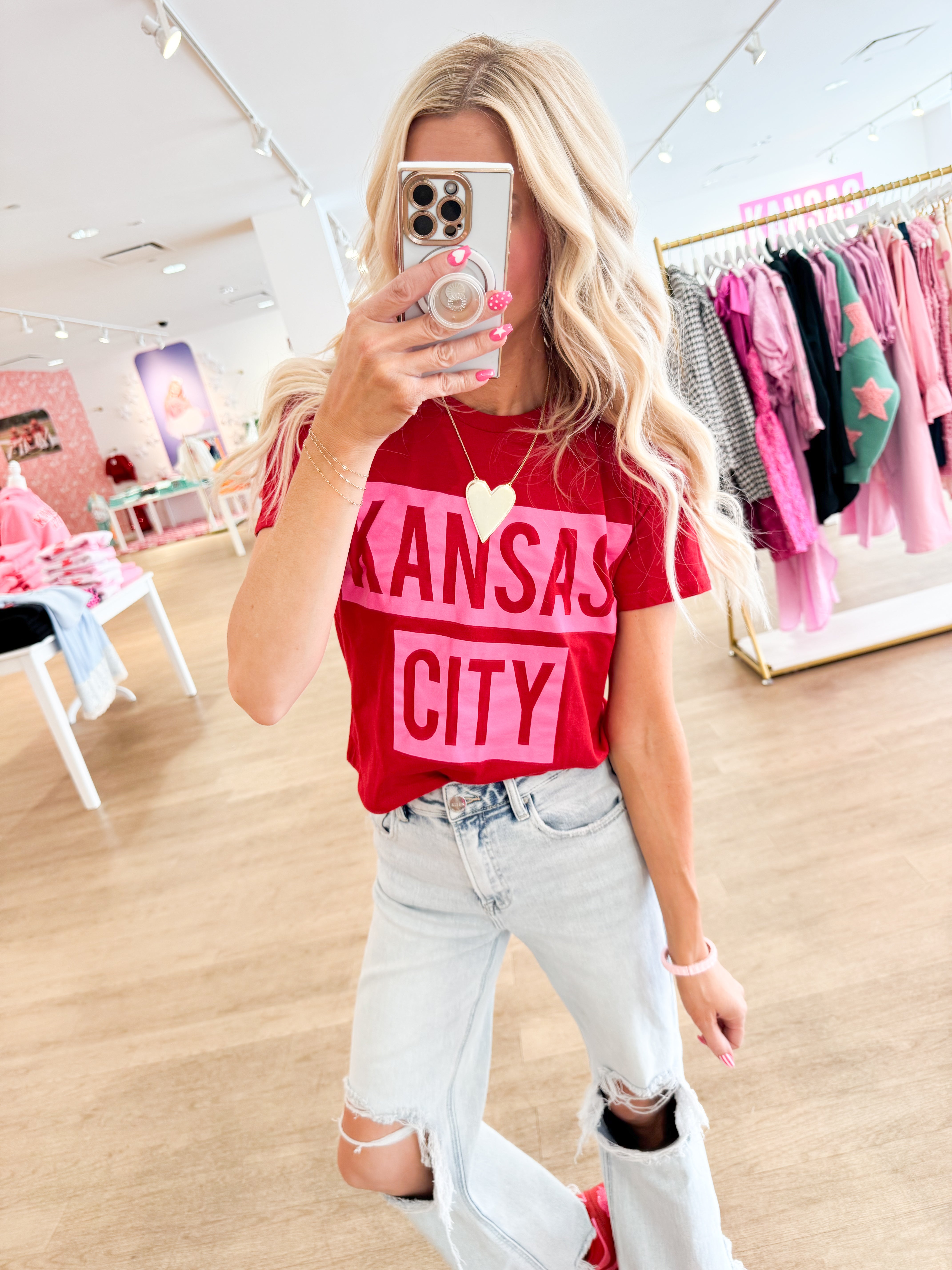 Red & Pink Signature Kansas City Crop Tee - Small is backordered and will ship as soon as it is back in stock.