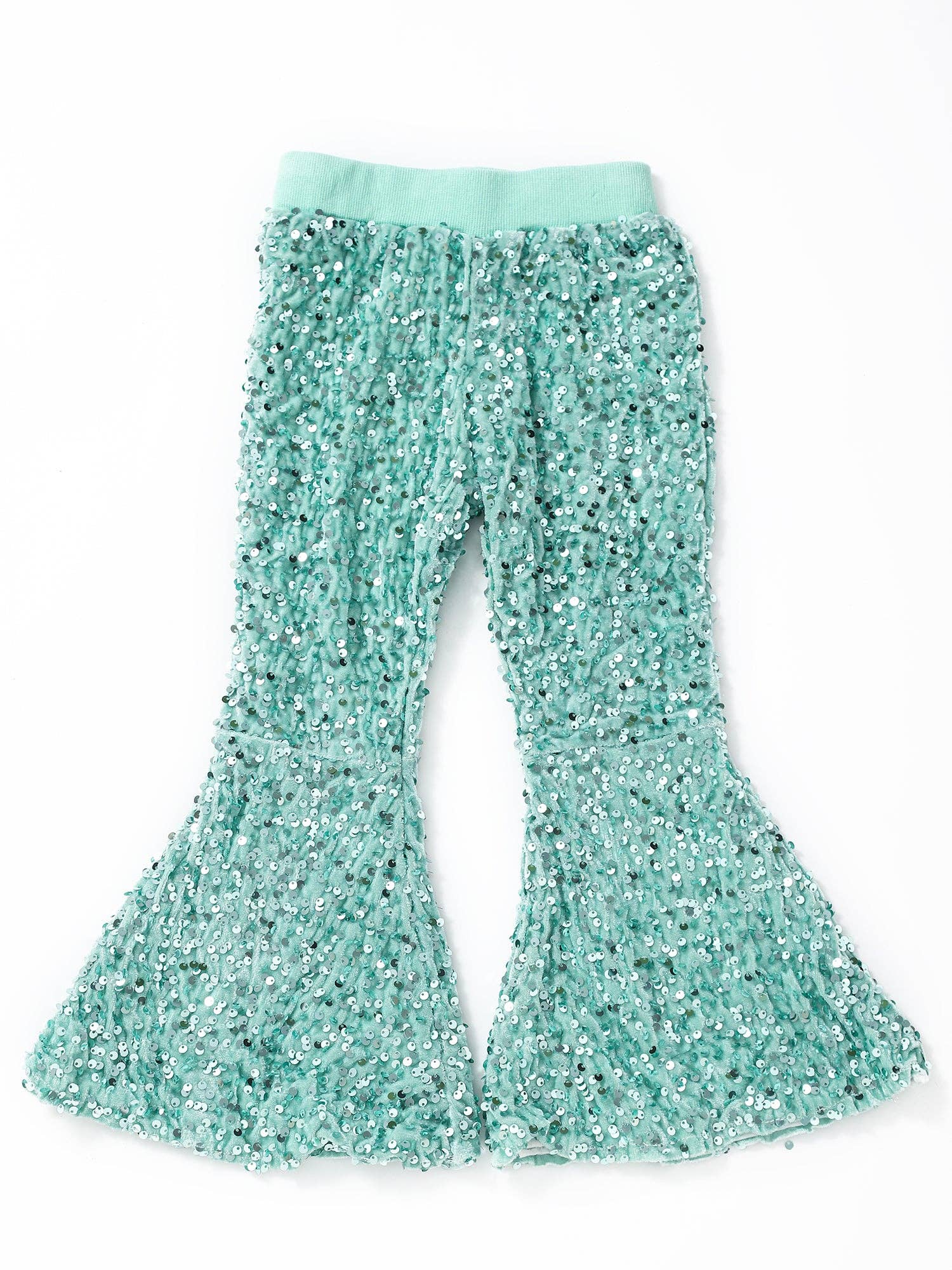 Girls Mint Sequin Flare Pants - 4T is backordered and will ship as soon as it is back in stock.
