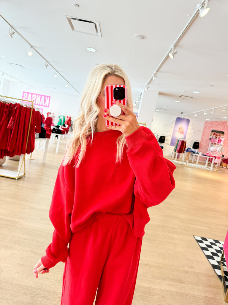 Red Comfy Dropped Shoulder Sweatshirt
