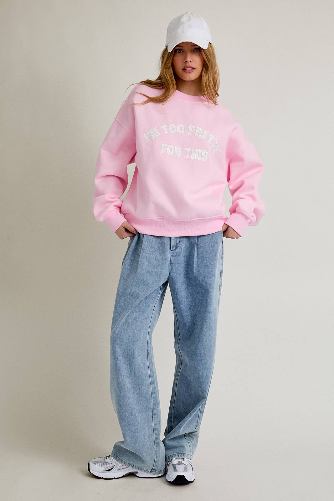 I'M TOO PRETTY FOR THIS Oversized Sweatshirt