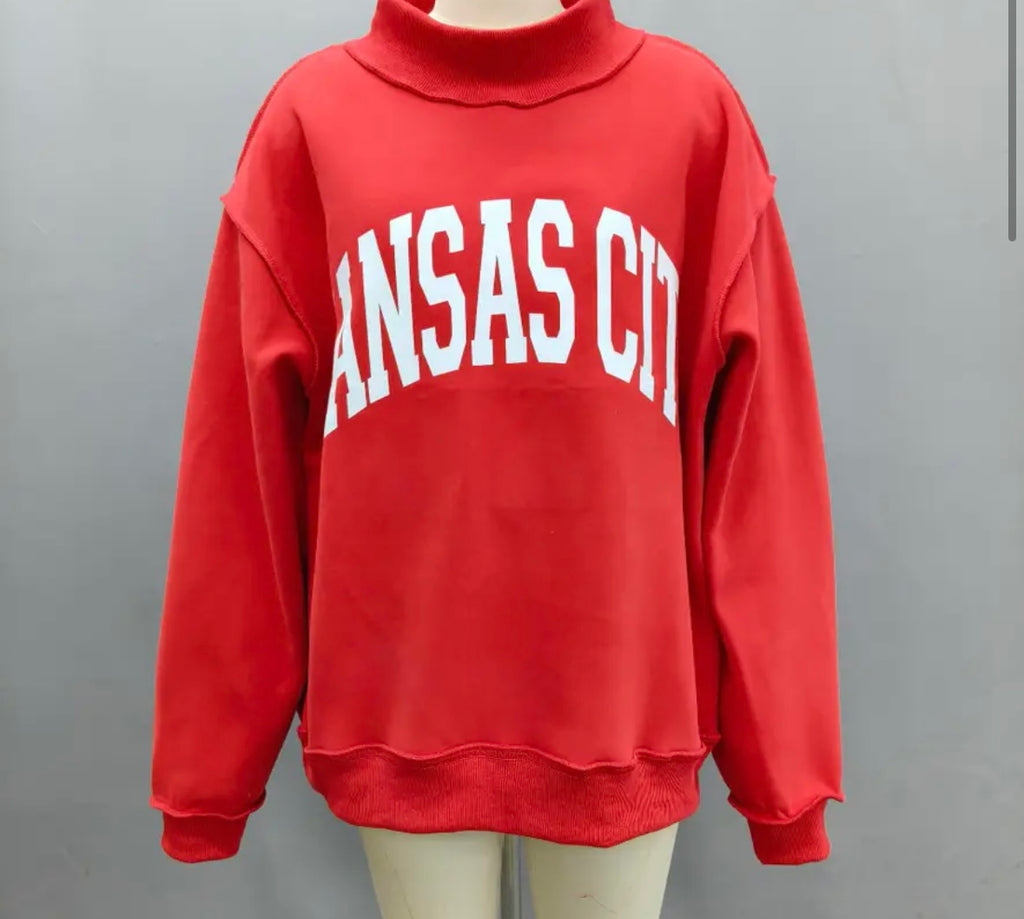 Red Reversible Mock-Neck Sweatshirt 'KANSAS CITY & KC' PRE-ORDER - Small/Medium is backordered and will ship as soon as it is back in stock.