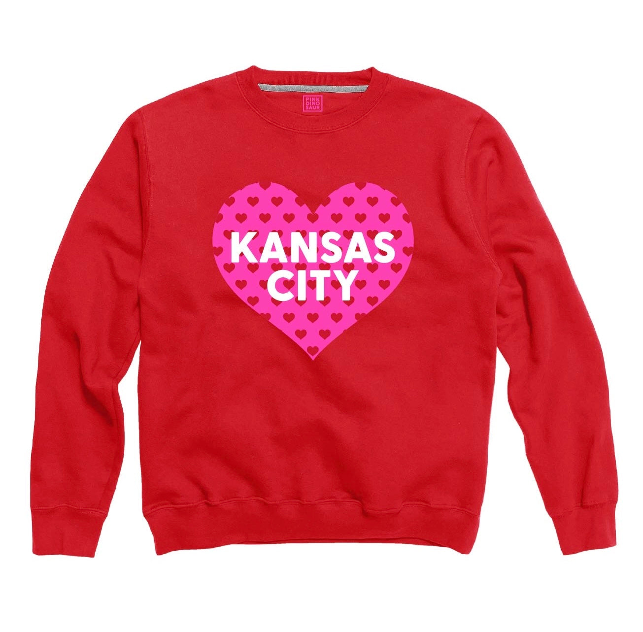 Red Kansas City Heart Sweatshirt - Small is backordered and will ship as soon as it is back in stock.