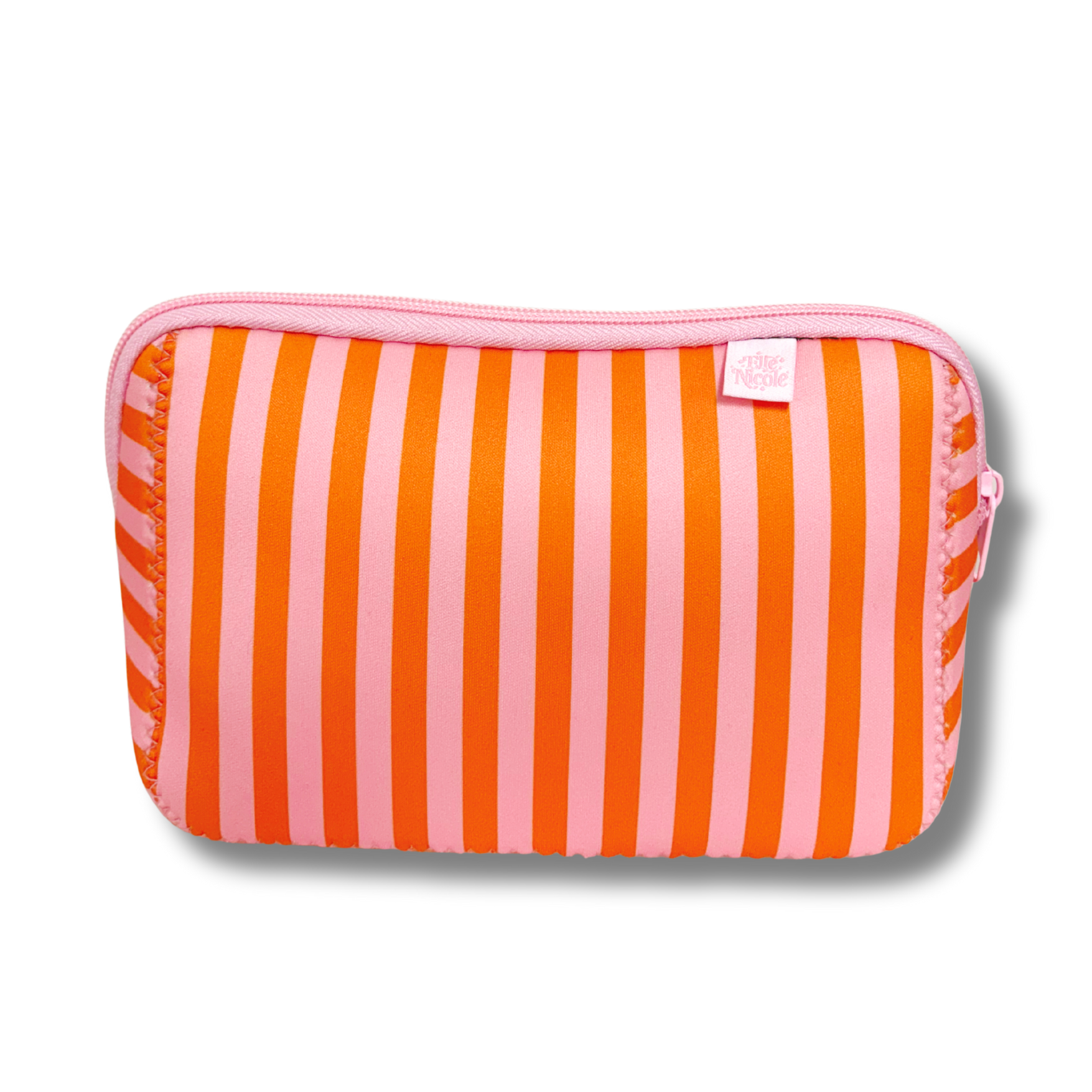 Introducing our new Cosmetic Bag. Designed by Ellē Nicole, this bag is made from durable neoprene and is perfect for on-the-go beauty needs. Stay stylish while keeping your cosmetics organized. Roughly 10 inches x 4 inches.
