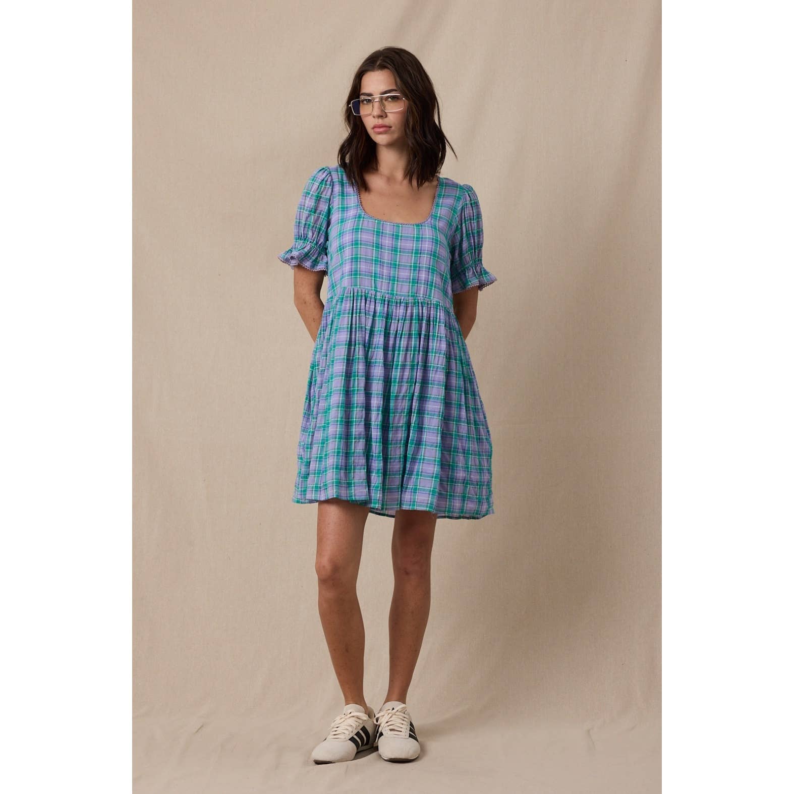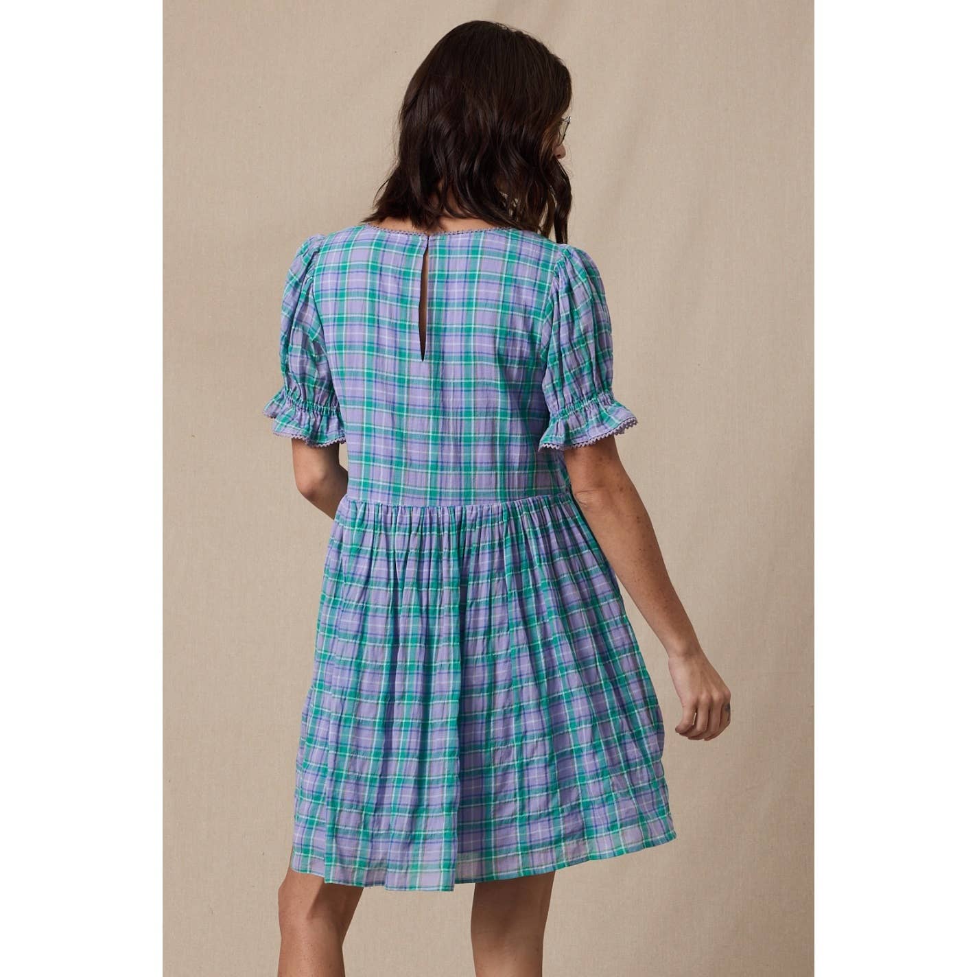 Flannel Mini Dress - LAVENDER/TEAL / Medium is backordered and will ship as soon as it is back in stock.
