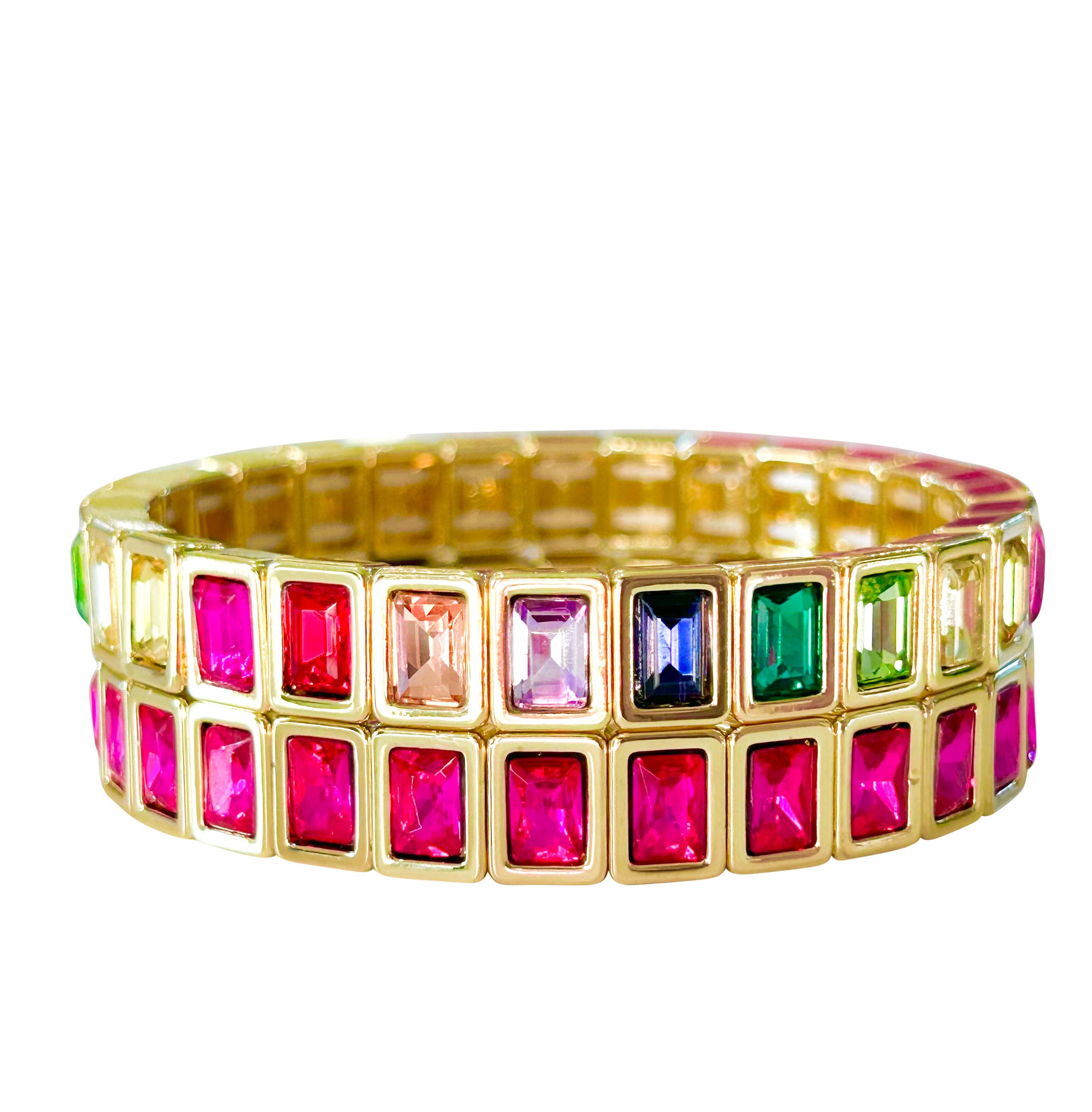 Bold, chic, and effortlessly versatile, the Gem Stack Multicolor Bracelet Set features a stylish black mix double-beaded design accented with luxe 18k gold plated details and sparkling CZ elements. Each bracelet offers its own unique texture and shine, making them perfect for stacking together or wearing separately for a more understated look.