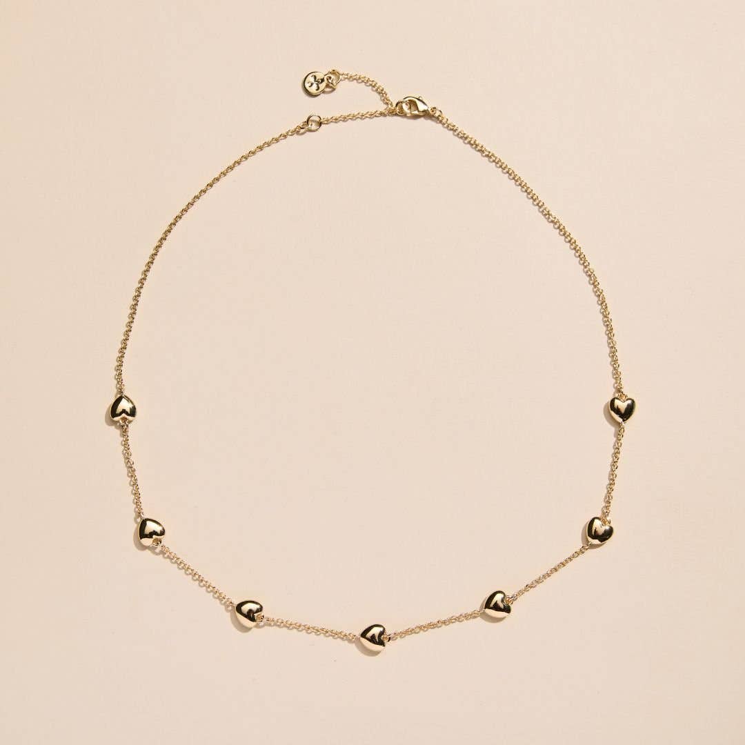 Dainty and minimalist, the Heart Delicate Saturn Chain Necklace is an interlinking station chain designed to delicately sit on your neckline. Upgrade your necklace stack with this 14k gold-plated staple, show off your favorite attachable charms, or wear it alone for a timeless touch.