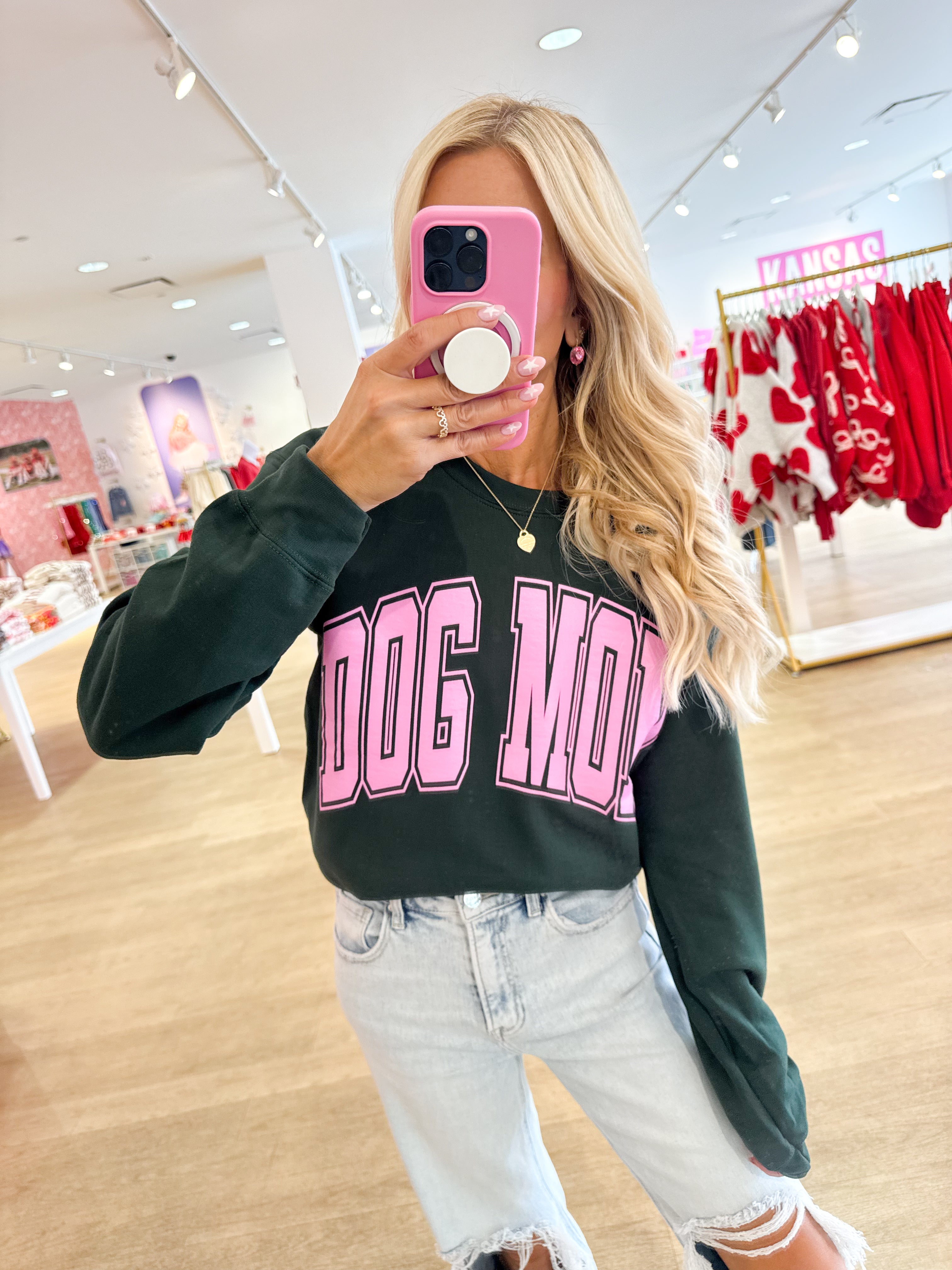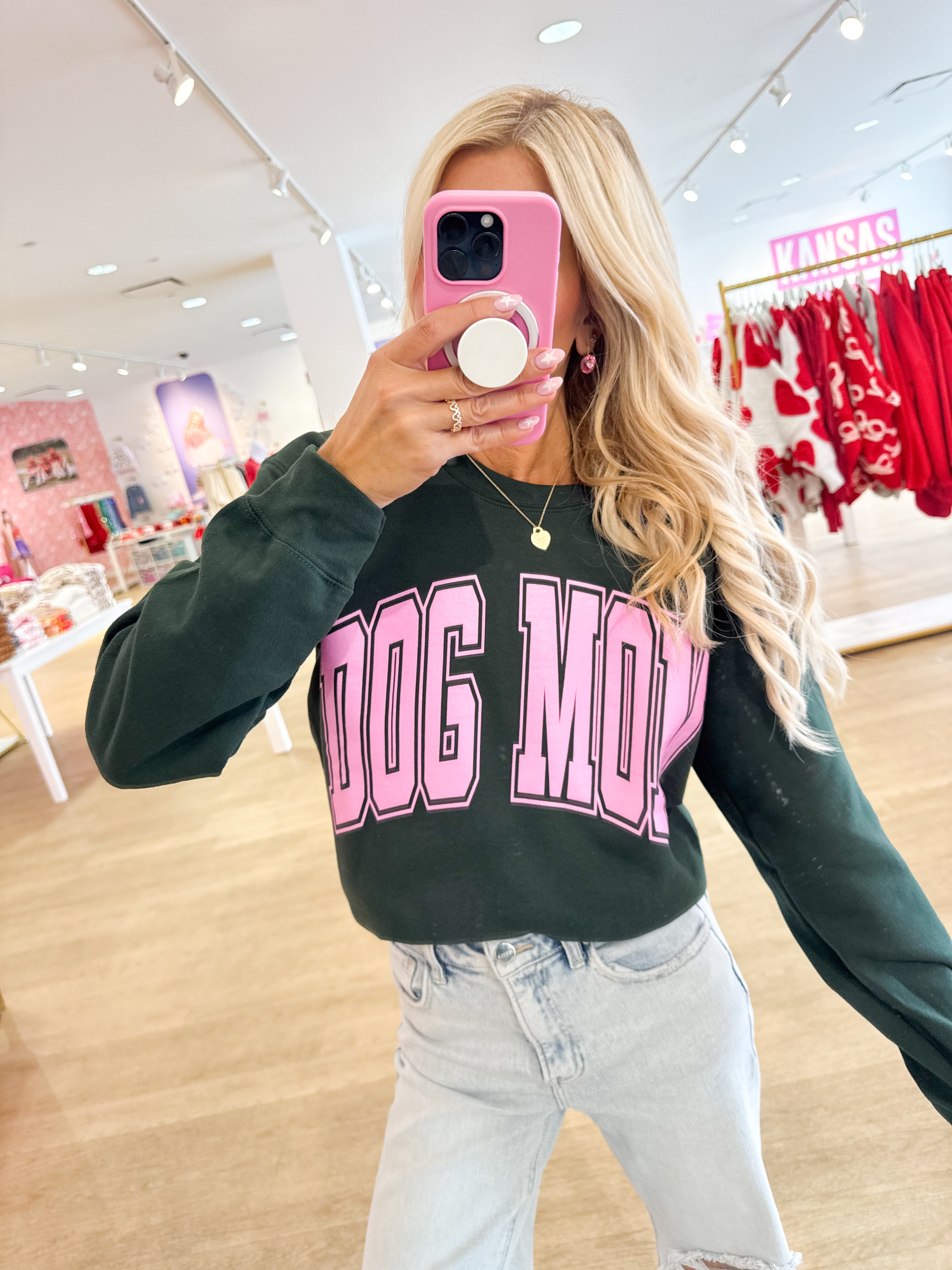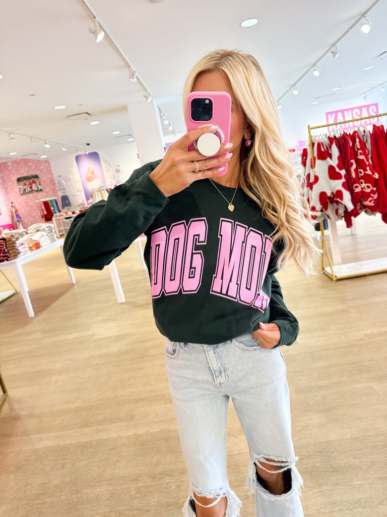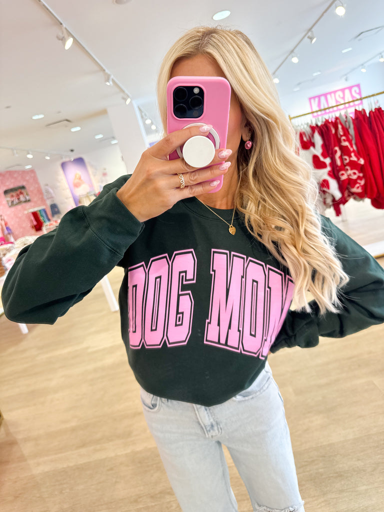 Hunter Green & Pink Dog Mom Sweatshirt - Small is backordered and will ship as soon as it is back in stock.