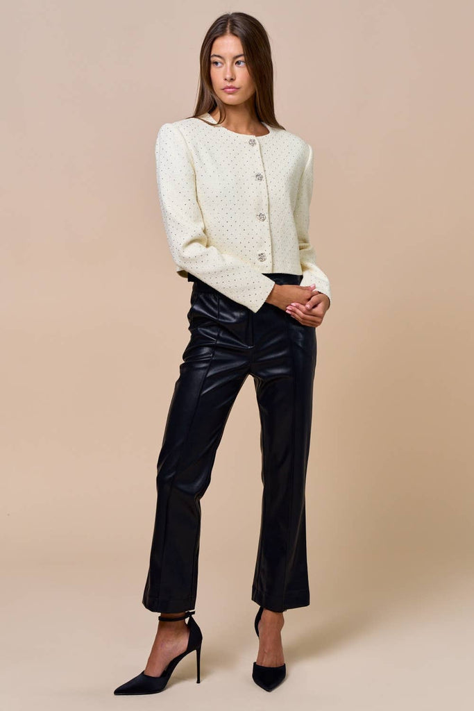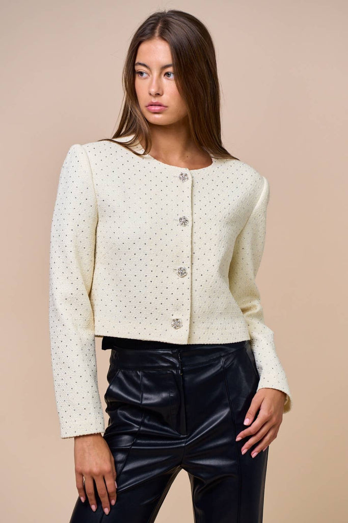Ivory Tweed Jacket with Rhinestone Detail