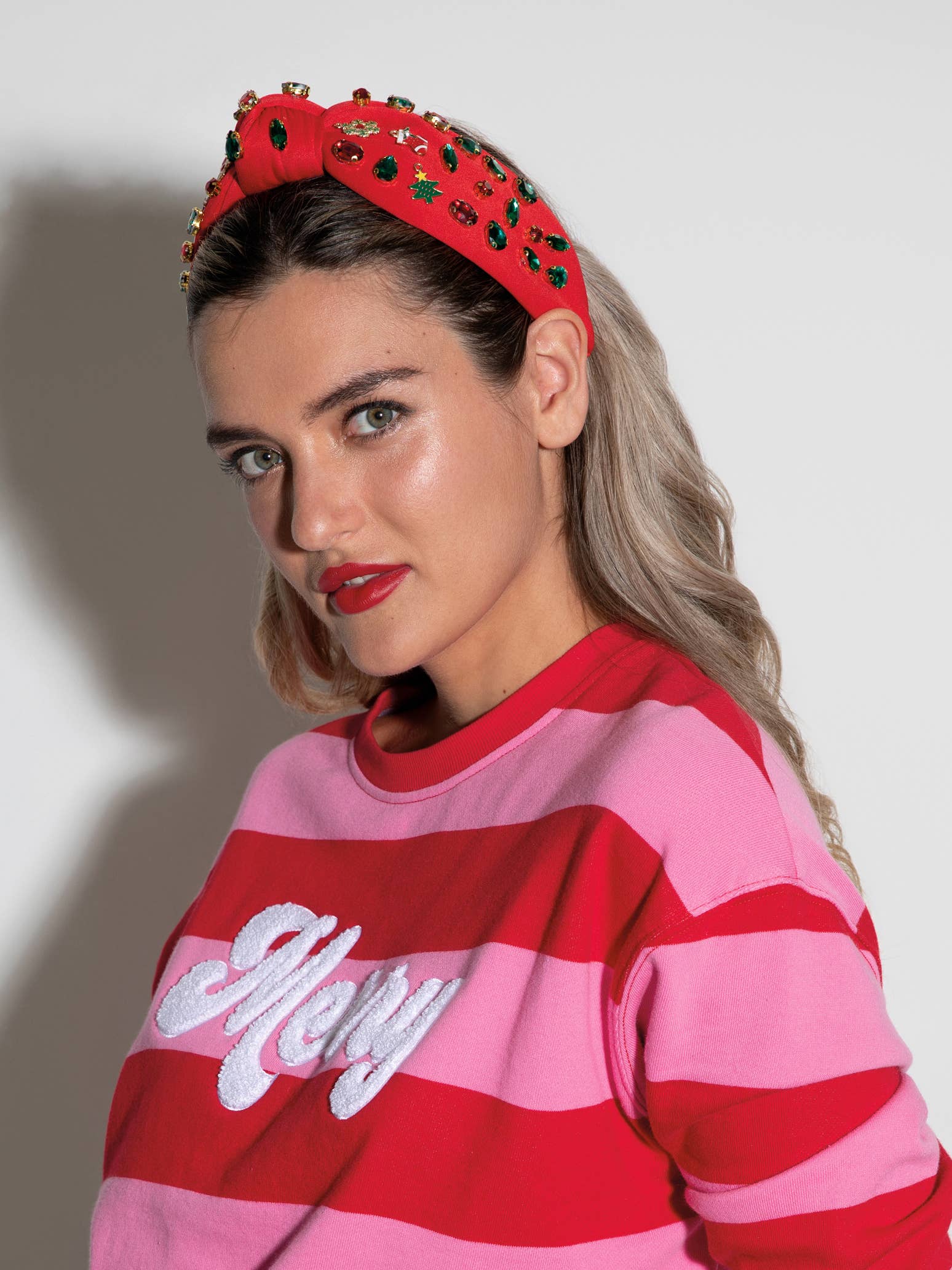 Introducing the Merry Headband from Shiraleah, a blend of style and durability. This women's fashion headband is crafted from polyester, rhinestones, and metal. The one-size-fits-all design ensures a comfortable fit for everyone. Shiraleah is a trend-driven lifestyle brand focusing on the little things that make life special. This headband is more than just an accessory. It's a statement piece that complements any outfit.