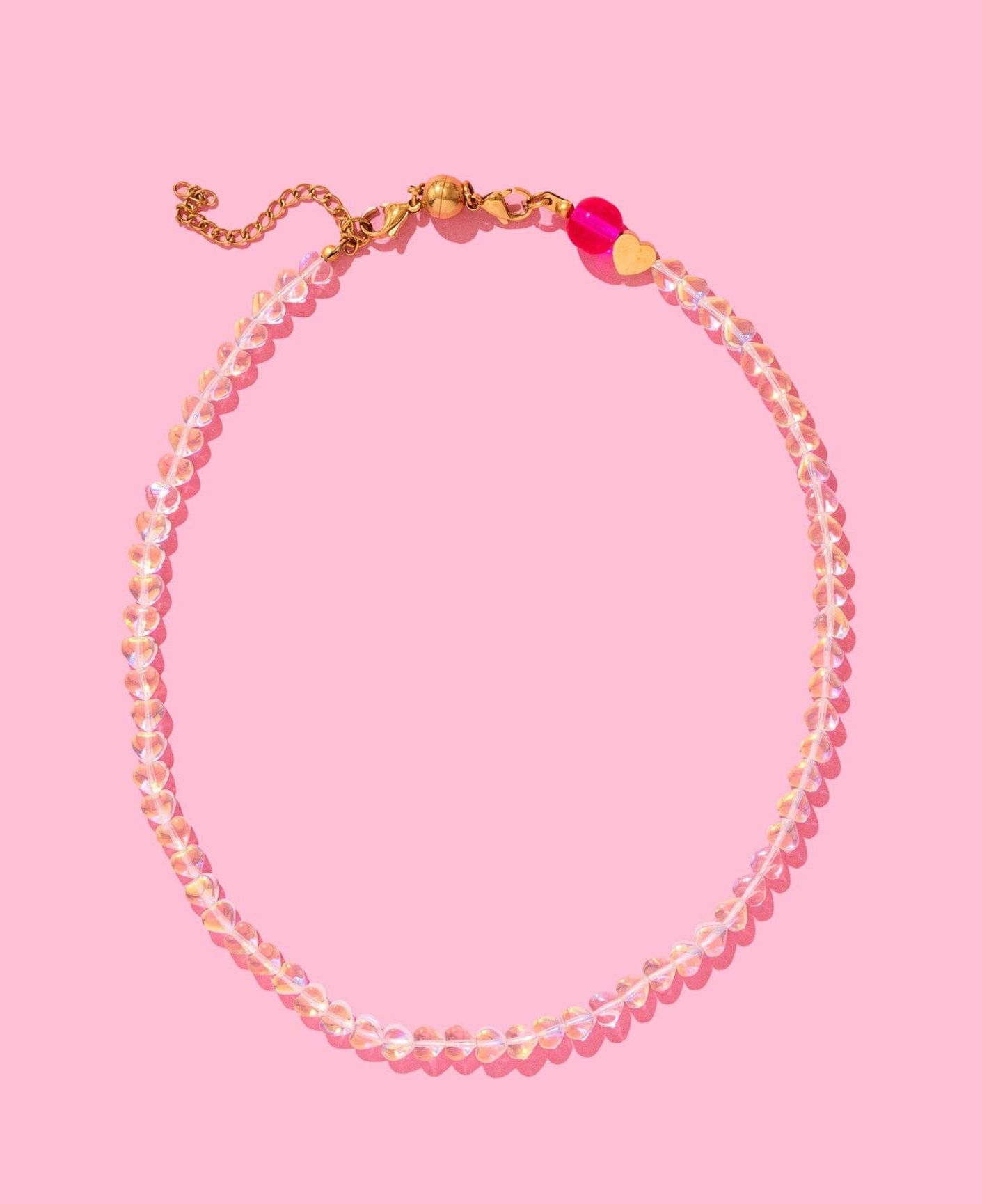 Style our beaded necklaces together for a layered look, or on their own. Pair one with a pair of earrings for a sweet + thoughtful gift! We love that these necklaces have a magnetic closure to easily take it on and off, as well as an extender chain to adjust the length! Details ♥ Chain length: 15" ♥ 2.5" extender ♥ Magnetic clasp closure + extender ♥ Heart-shaped glass beads ♥ 14k gold plated stainless steel extender and clasp ♥