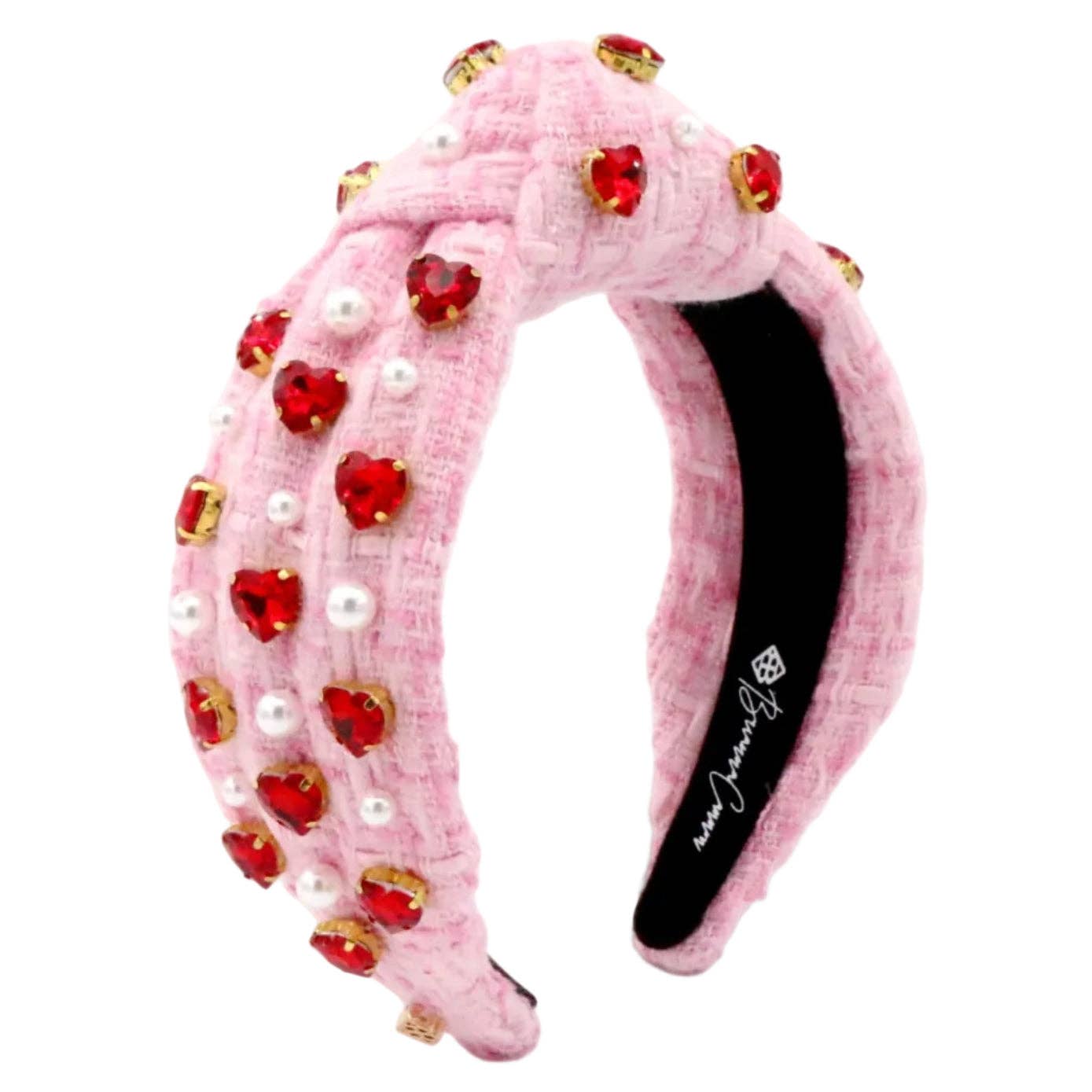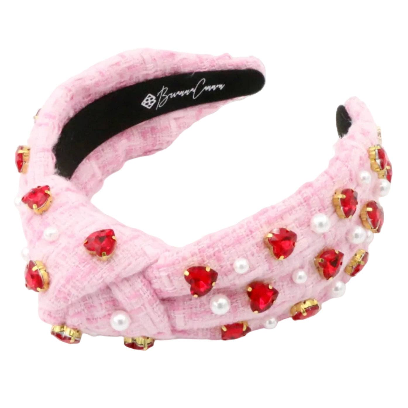 Pink Tweed Headband with Red Hearts and Pearls is backordered and will ship as soon as it is back in stock.