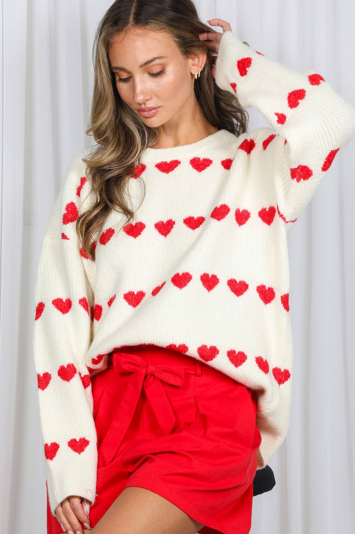 Sweet Hearts Embellished Cozy Knitted Sweater - Small / Cream is backordered and will ship as soon as it is back in stock.
