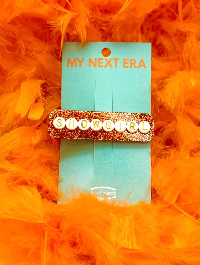 Taylor Showgirl Glitter Orange Hair Clip Accessory TS Swift is backordered and will ship as soon as it is back in stock.